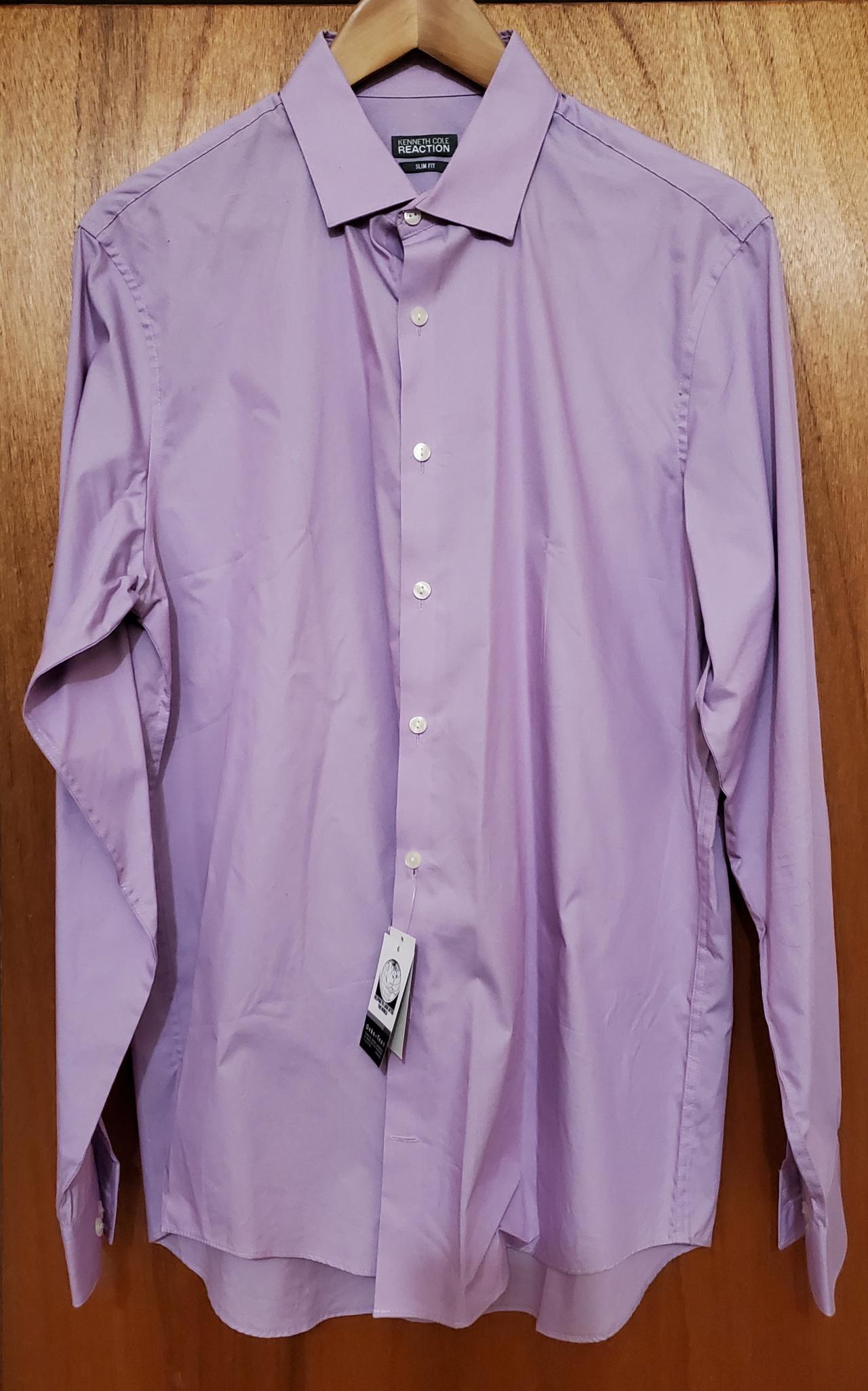 Kenneth Cole REACTION Men's Slim Fit Technicole Stretch Solid Dress Shirt (Purple) 15.5 32/33 - New with tags