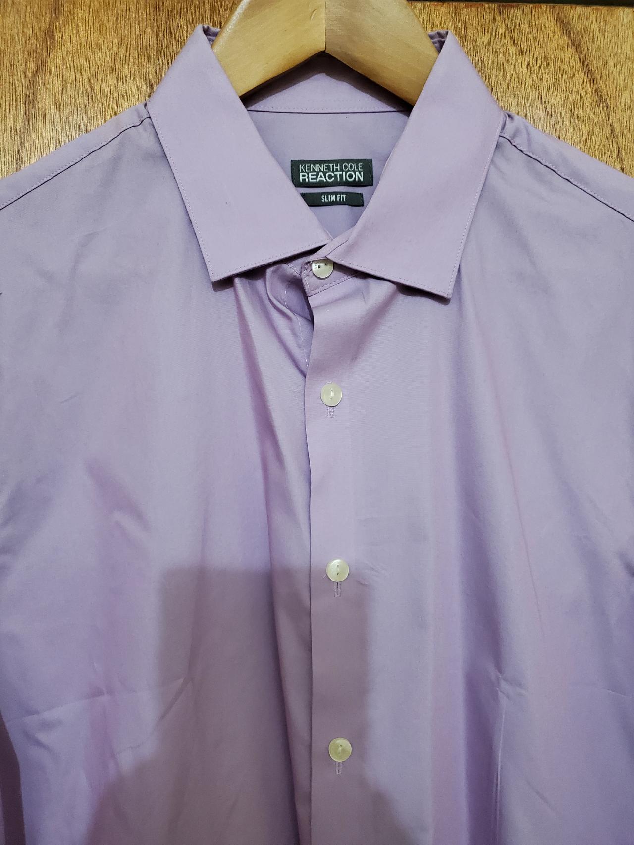 Kenneth Cole REACTION Men's Slim Fit  Technicole Stretch Solid Dress Shirt (Purple) 15.5 32/33 - New with tags